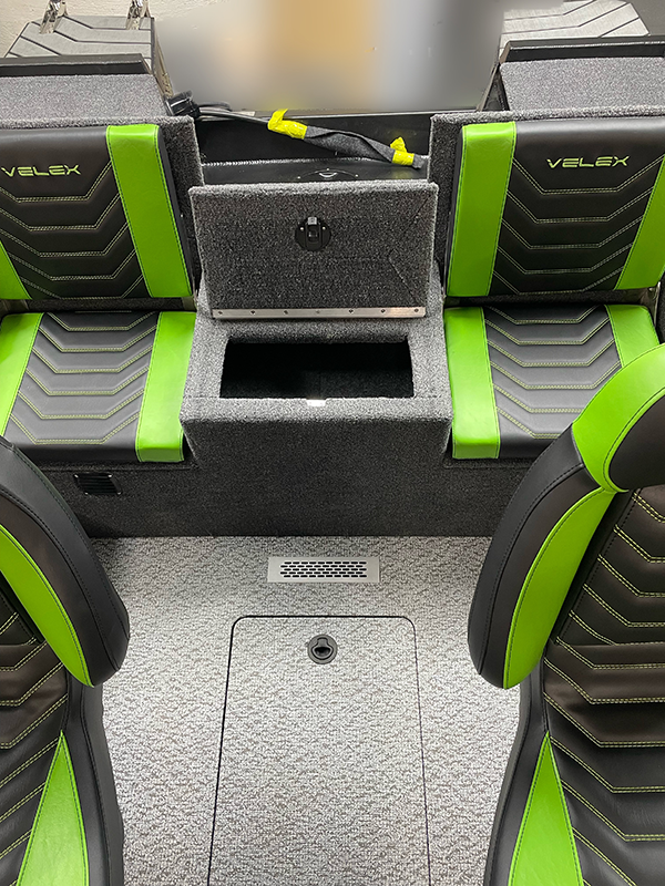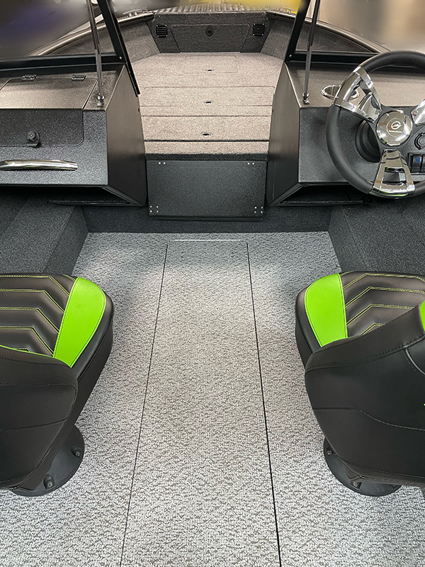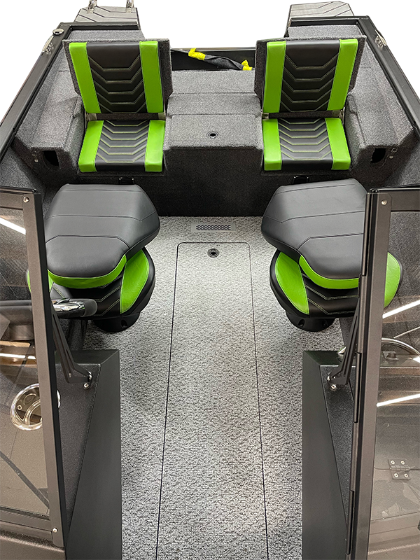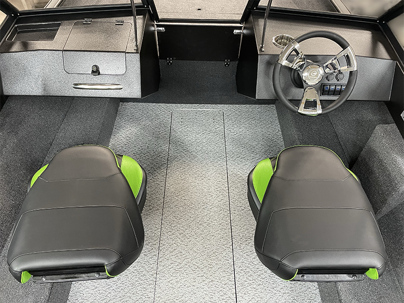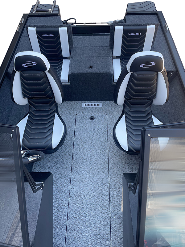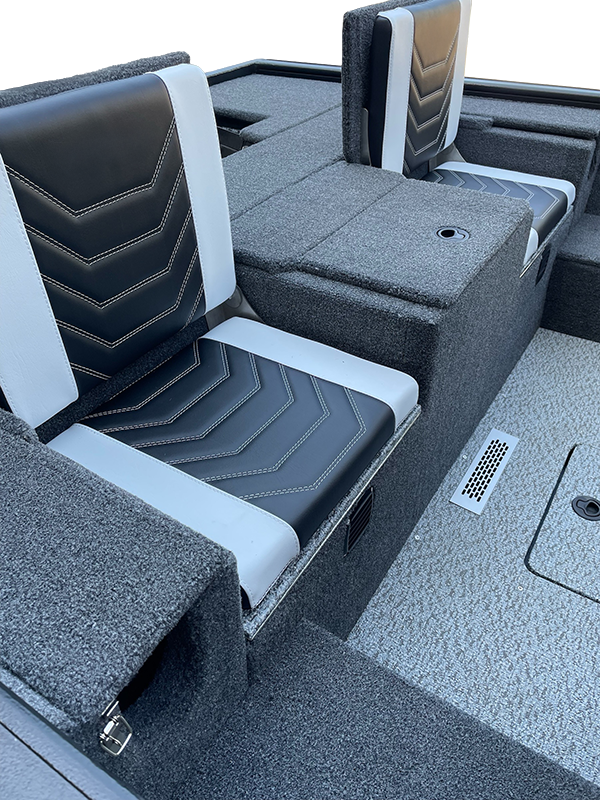- Foldable seats in the stern, convertible into a fishing platform (2 pcs). Seats include padded marine-grade vinyl inserts.