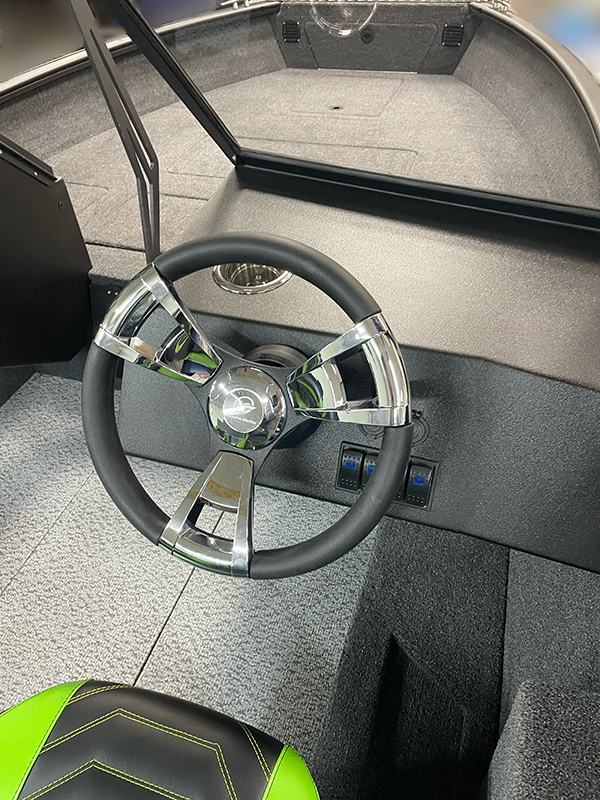 - Twin aluminum consoles with tempered glass windshields and a central gate.